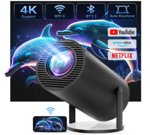 CLOKOWE Portable 4K Mini Projector with WiFi and Bluetooth – 【Built-in Apps & Auto Keystone】Full HD 1080P Supported, 180° Rotation Outdoor Movie Projector, Compatible with TV Stick/Smartphone/HDMI/USB