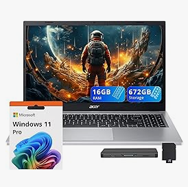 Acer Aspire 3 15.6″ FHD Laptop – AMD Ryzen 7 7730U, 16GB DDR4 RAM, 672GB Storage(512GB SSD + 160GB Docking Station Set), AMD Radeon Graphics, Backlit Keyboard, Wi-Fi 6, Win 11 Pro, Silver