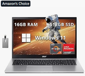 Acer Aspire 3 Laptop – 15.6″ FHD Display, AMD Ryzen 7 5700U Processor, 16GB RAM, 512GB SSD, AMD Radeon Graphics, Numeric Keypad, Webcam, WiFi 6, Pure Silver, Windows 11 Home, 32GB Hotface USB Card